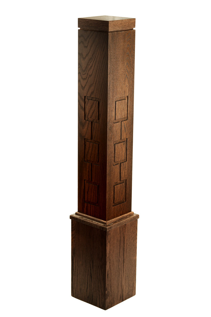 Inspired the mid-century modern style. These box newel posts pair well with the cubic baluster.