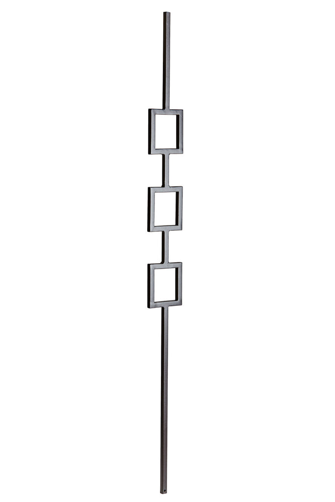 Mid-Century Modern inspired baluster crafted from powder coated square steel tubing. Geometric & Art Deco style.